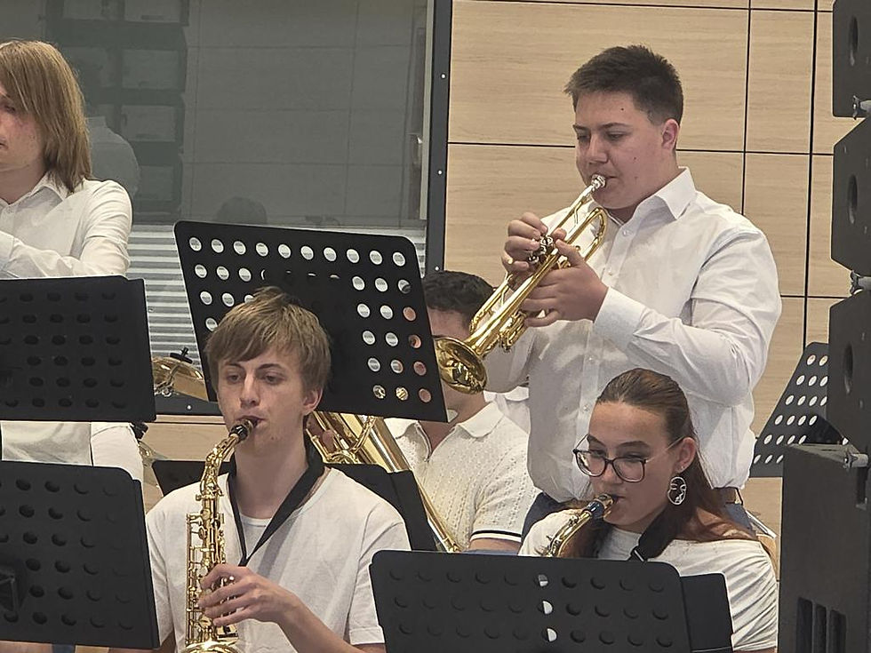 Musikalisch wurde die Feier schwungvoll begleitet. Der Spielmannszug der Freiwilligen Feuerwehr sowie die Stadtkapelle sorgten für einen festlichen Rahmen. Unter der Leitung von Frau Katja Resch, Musiklehrerin der Humboldt-Realschule, erklangen unter anderem ein ABBA-Medley sowie Musik von Europe. Besonders „The Final Countdown“ wurde passend und wirkungsvoll inszeniert und verlieh dem Festakt einen besonderen musikalischen Höhepunkt.